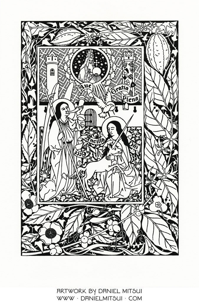 Millefleur Press is my imprint for publishing letterpress works inspired by the printed books and broadsides of the 15th century. I am the exclusive illustrator, designer and typographer; I collaborate with various pressmen, papermakers and bookbinders for its projects. My intention is to create printed works that are not mere reproductions, but works of art in their own right.