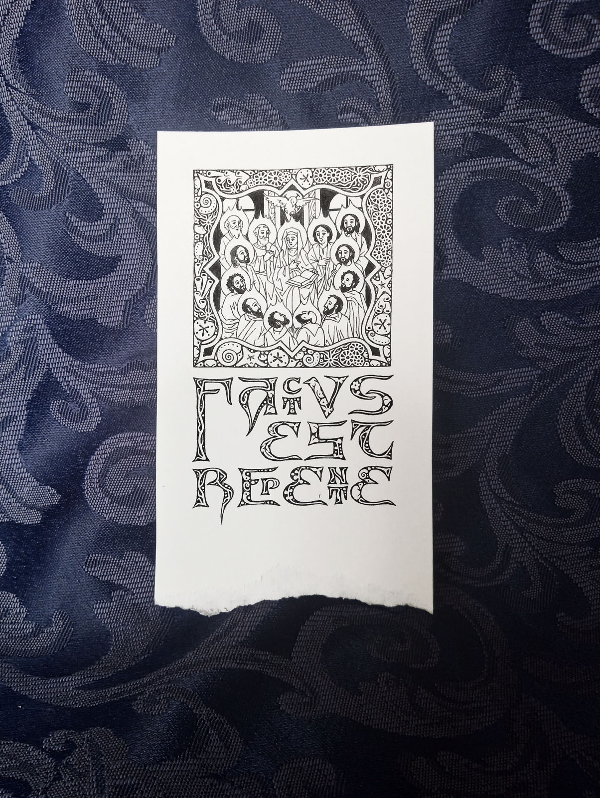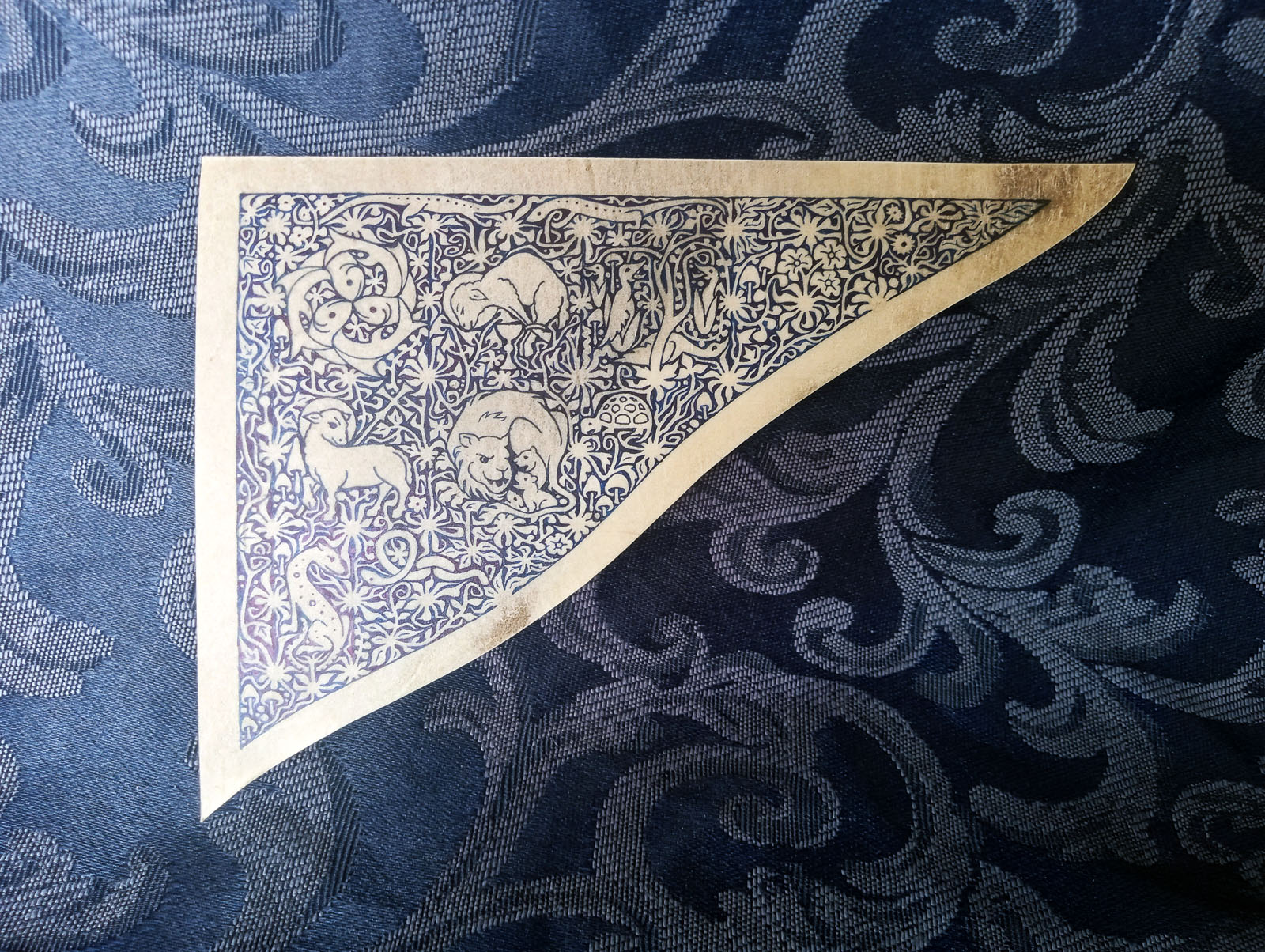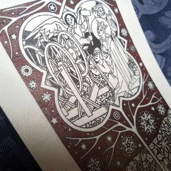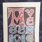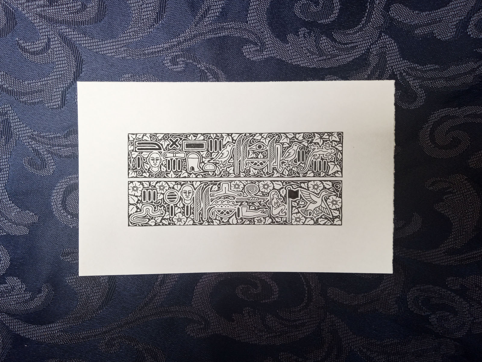 Ink drawing on calfskin 2" × 4" Description here | | $160 |